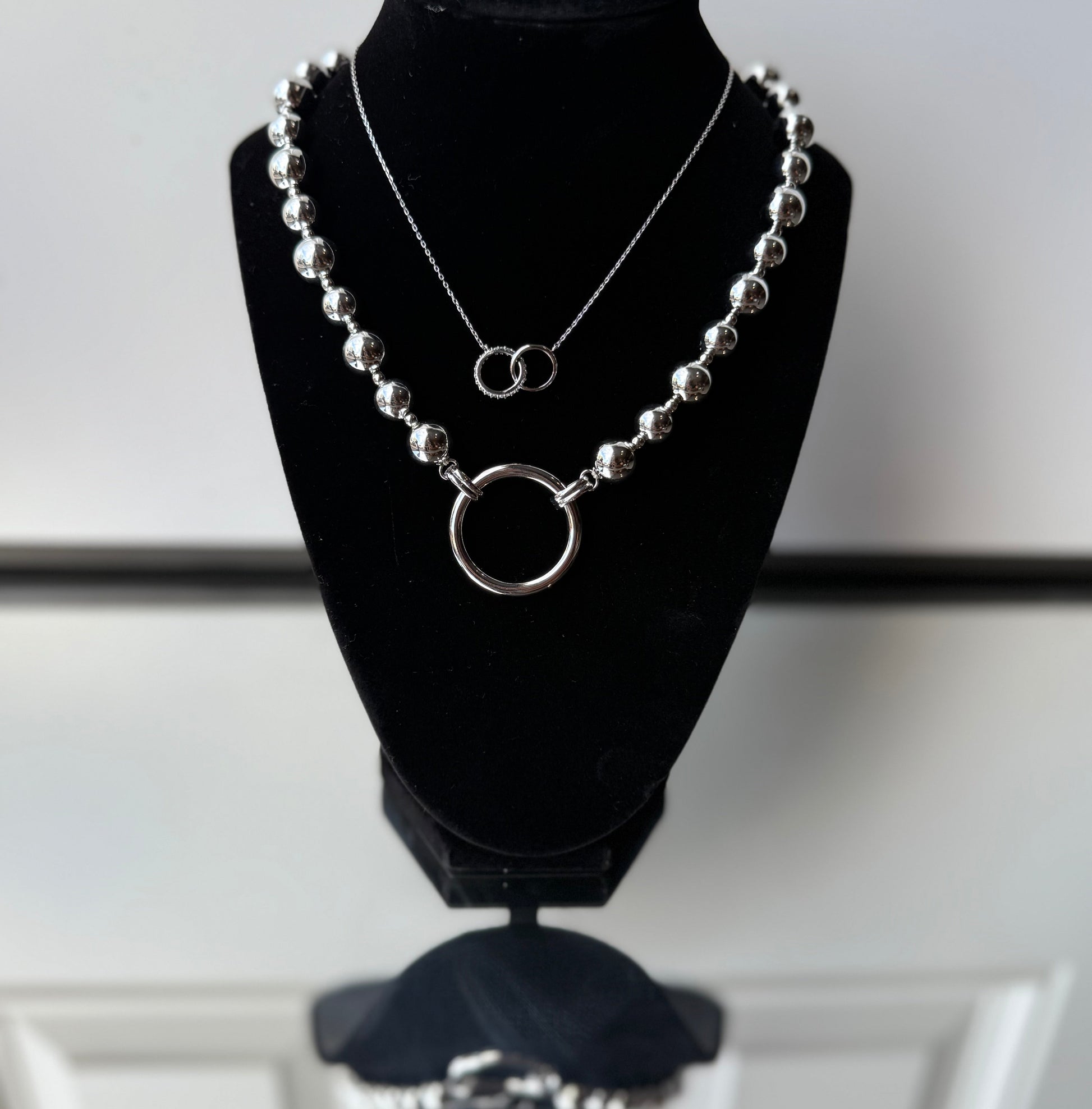 This stylish gold collar necklace is composed of beads and a circle charm. Wear it alone as a statement piece, or layer with your other favorite pieces. You can personalize this necklace by adding one larger pendant, or multiple charms, making this an extremely versatile piece.